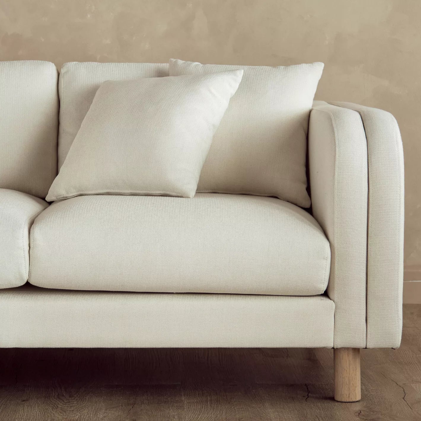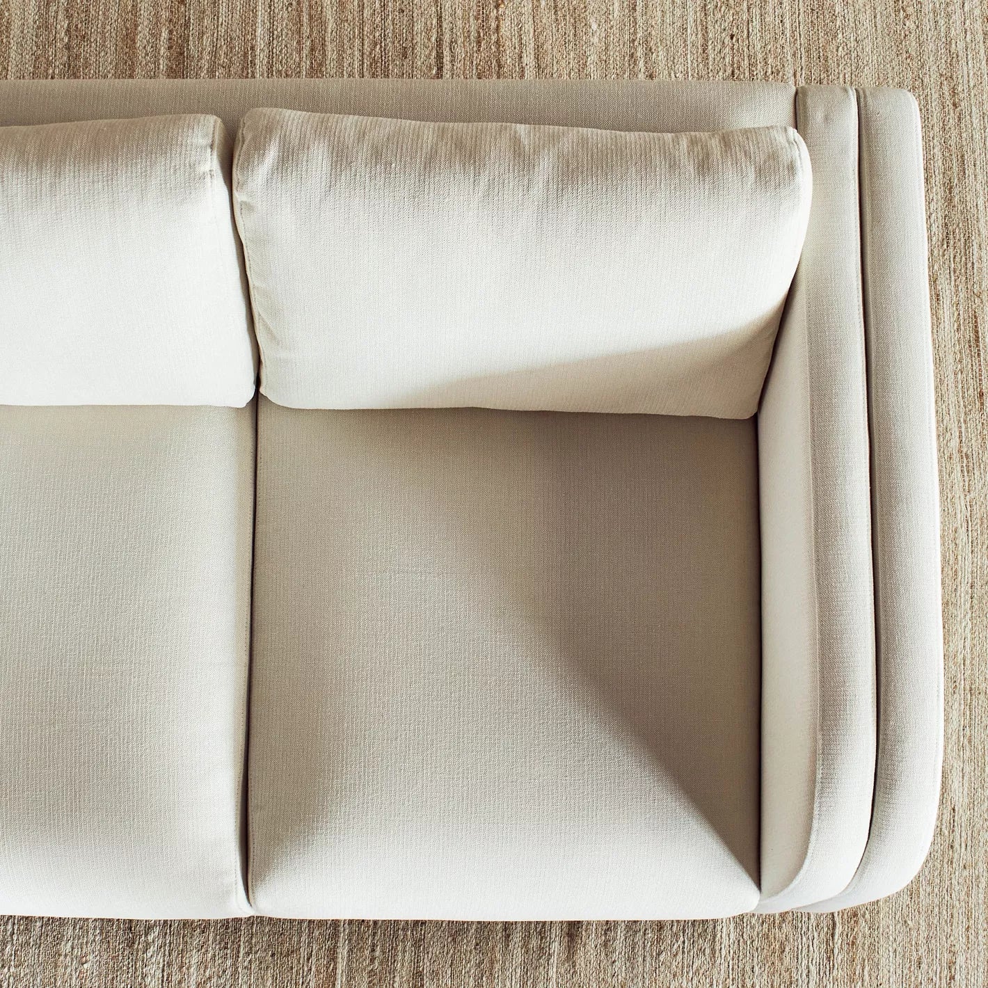 The premium fabric used in its construction not only adds to its visual appeal but also enhances its longevity and ease of maintenance. Fabric sofas are often preferred for their comfort and versatility, as they can complement various interior styles, from contemporary to traditional.