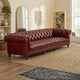 The Indiana Leather Chesterfield Sofa is assembled using an eight-way hand-tied method. The one-of-a-kind appearance and interesting construction methodology ensures that this sofa will be the centerpiece of your sitting room. A truly unique piece of furniture! 100% Indian Made to the highest standards of quality and craftsmanship!