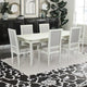 - The dining set includes six chairs, each featuring legs as a stylish accent. The legs add a pop of color and modern flair to the overall design. The chair seats and backrests may also be made from solid wood or feature upholstery for added comfort during meals.