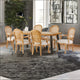 - The dining table is the centerpiece of the set and is crafted from solid wood, known for its durability and attractive grain patterns. Solid wood is a popular choice for furniture due to its strength and resistance to wear and tear. The tabletop is usually smooth and polished, providing a pleasant dining surface.