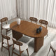 - The dining table is the center piece of the set and is crafted from solid wood, known for its durability and attractive grain patterns. Solid wood is a popular choice for furniture due to its strength and resistance to wear and tear. The tabletop is usually smooth and polished, providing a pleasant dining surface.