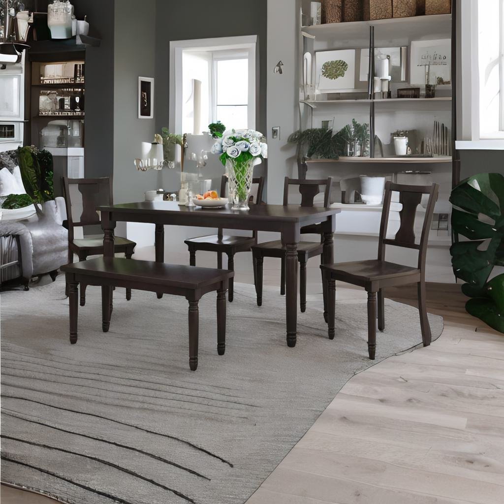 - The dining table is the centerpiece of the set and is crafted from solid wood, known for its durability and attractive grain patterns. Solid wood is a popular choice for furniture due to its strength and resistance to wear and tear. The tabletop is usually smooth and polished, providing a pleasant dining surface.