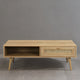- Coffee table has a spacious table top and comes with a drawer and shelf space to perfectly tuck away any items.