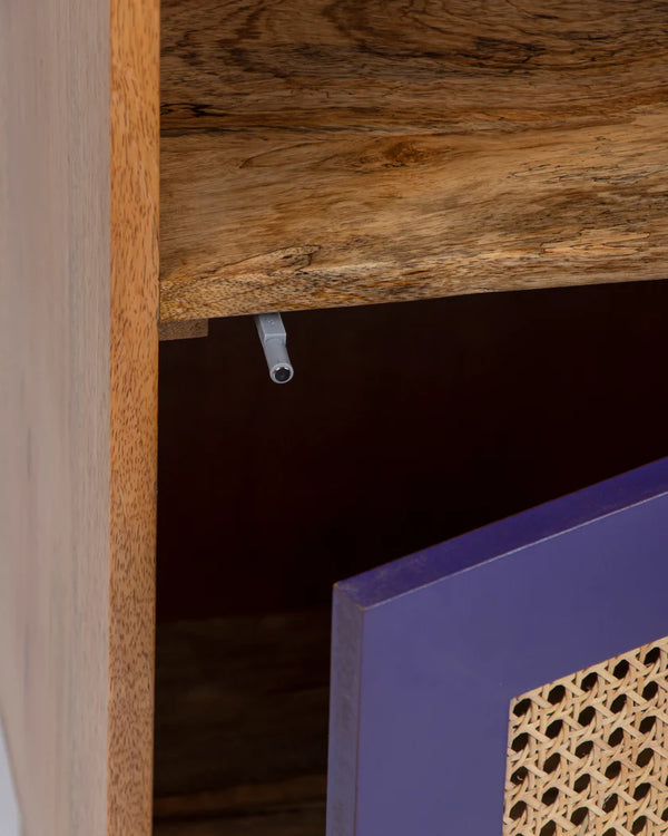 The wooden bookshelf with a Contemporary Design is a stylish and functional piece of furniture designed to hold and display books, decor items, and other belongings. It combines the natural beauty of solid wood with the unique texture and appearance of rattan, creating a modern and visually appealing piece that complements various interior styles.