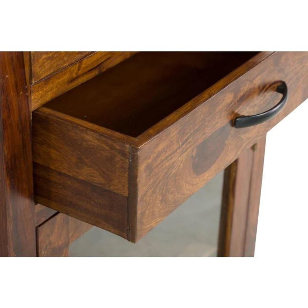 A wooden display cabinet or long crockery unit is a piece of furniture designed to showcase and store crockery, glassware, and other decorative items. Made from Sheesham wood, this type of cabinet offers both functionality and aesthetic appeal, making it a valuable addition to any dining area or living room.