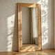- This elegant full-length rectangular mirror features a beautifully crafted wooden frame that adds warmth and sophistication to any interior space. Designed with a tall vertical structure, the mirror allows a complete head-to-toe reflection, making it perfect for dressing rooms, bedrooms, walk-in closets, living rooms, or entryways. The frame showcases a subtle geometric textured pattern that enhances its visual appeal while maintaining a clean and modern aesthetic.