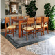 - The dining table is the centerpiece of the set and is crafted from solid wood, known for its durability and attractive grain patterns. Solid wood is a popular choice for furniture due to its strength and resistance to wear and tear. The tabletop is usually smooth and polished, providing a pleasant dining surface.