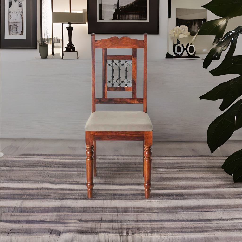 The solid wood dining set featuring a stylish and inviting furniture ensemble designed to accommodate six people for dining comfortably. It combines the natural beauty of solid wood with the striking contrast of legs on the chairs, creating an eye-catching and contemporary look. Here's a description of the dining set: