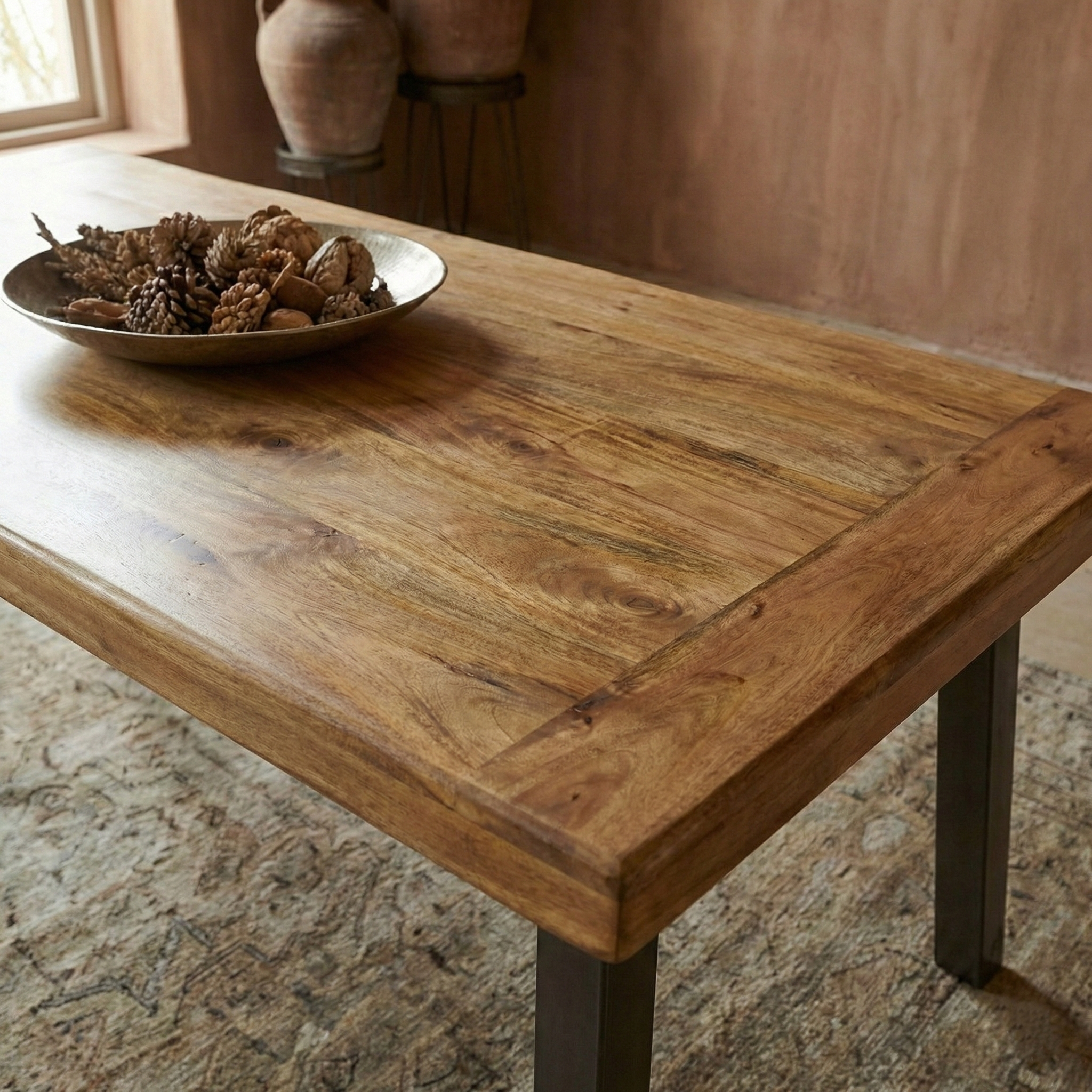 1. The dining table is the centerpiece of the set and is crafted from solid wood, known for its durability and attractive grain patterns. Solid wood is a popular choice for furniture due to its strength and resistance to wear and tear. The tabletop is usually smooth and polished, providing a pleasant dining surface.