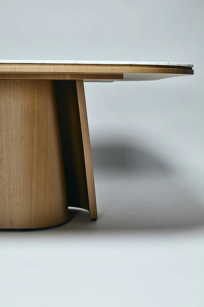 The combination of marble and walnut creates a stunning contrast of materials, elevating the table's aesthetics and making it a statement piece in your dining room.
