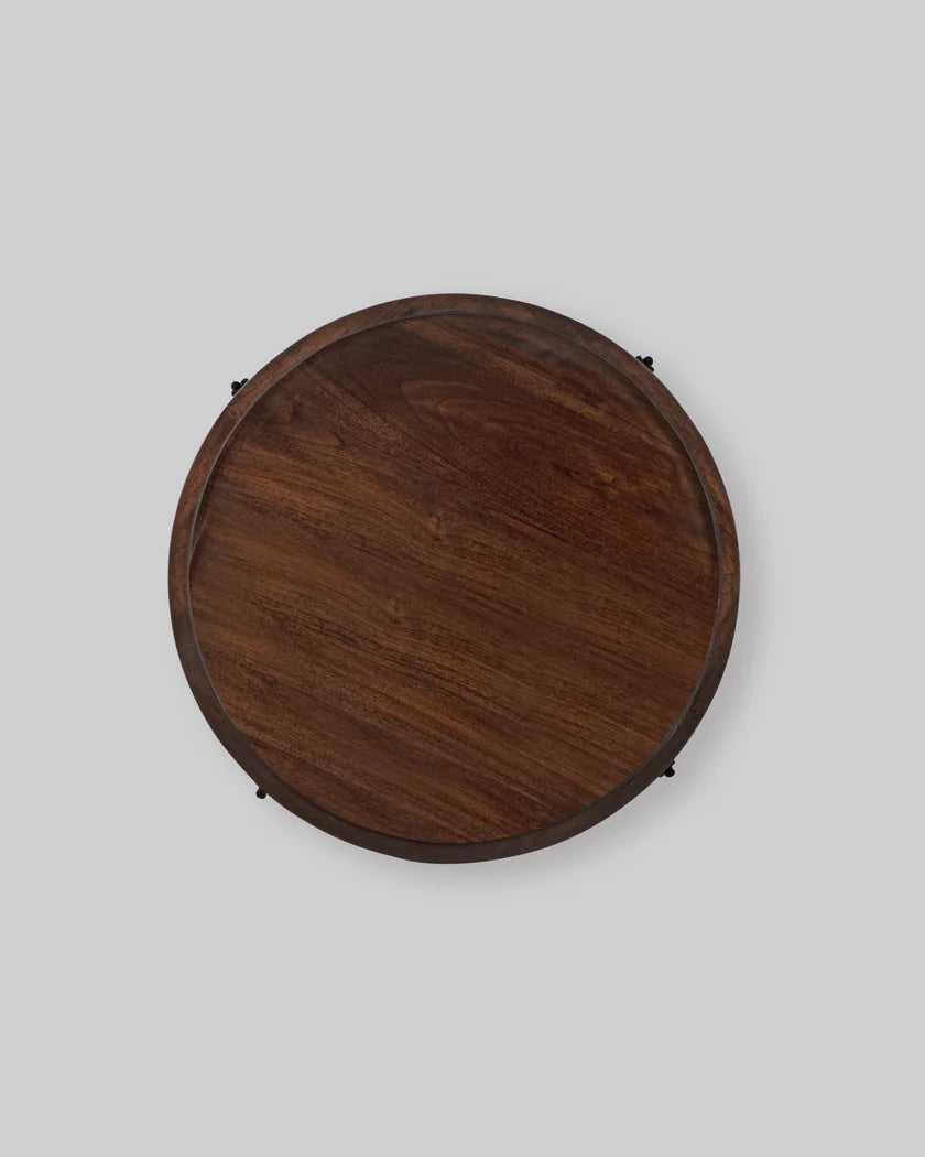 The table features a round top made from Sheesham solid wood, also known as Indian Rosewood. Sheesham wood is prized for its durability, rich grain patterns, and warm hues, making it an excellent choice for furniture. The wood's natural variations give each table a distinct and organic character, ensuring that each piece is unique.
