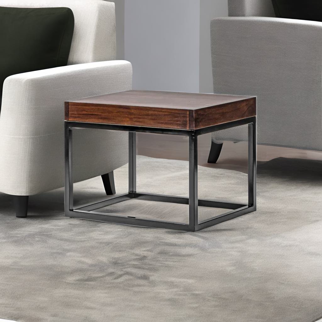The wooden end table is a timeless and versatile piece of furniture designed to complement various interior styles. It typically consists of a sturdy wooden tabletop, supported by metal legs that provide stability and an industrial touch to its overall design.