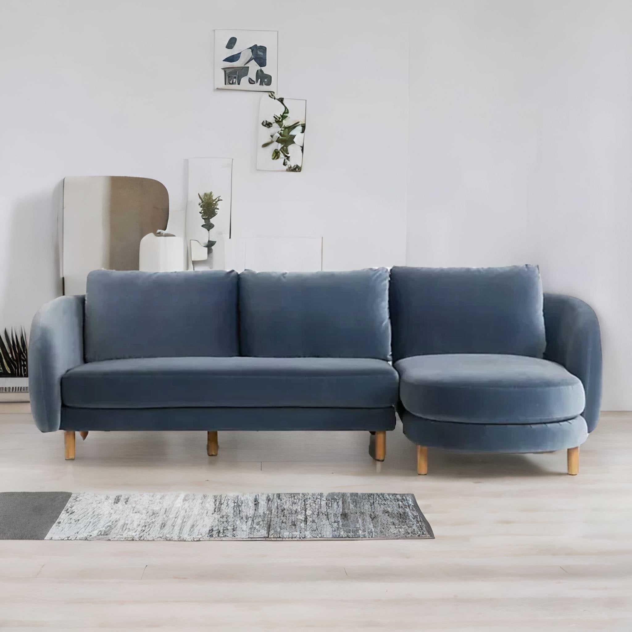 The sofa is upholstered with plush velvet fabric, known for its softness and sheen, creating a smooth and inviting surface to sit or lie on. Velvet is available in various colors, allowing you to choose a shade that complements your interior decor.