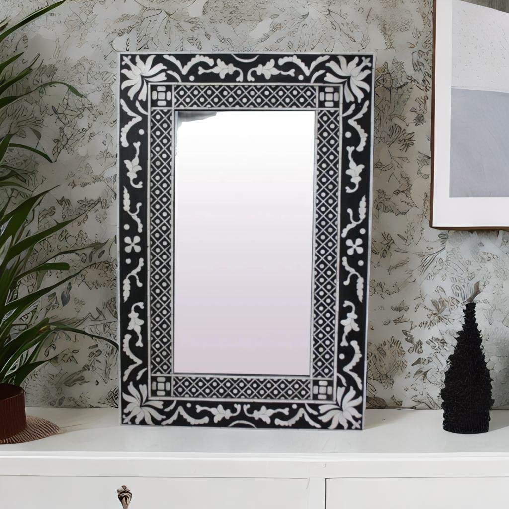 Rectangular Bone inlay Mirror for Wall - Black Vanity