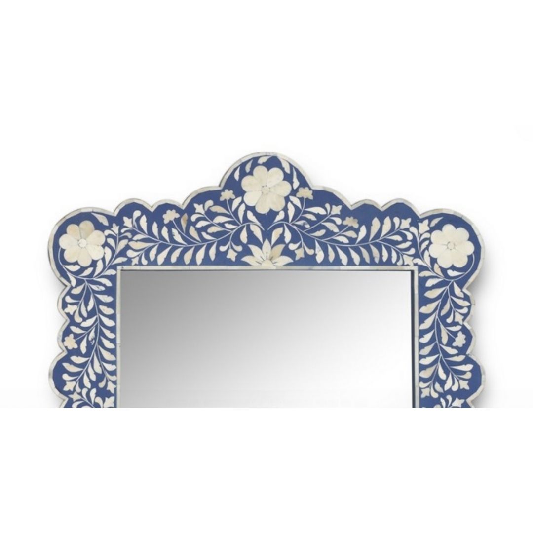 Striking abstract detail With its intricate bone inlay detailing this Mirror brings a pop of color and abstract visual interest that instantly adds a bold decorative touch no matter where it’s placed around the home.