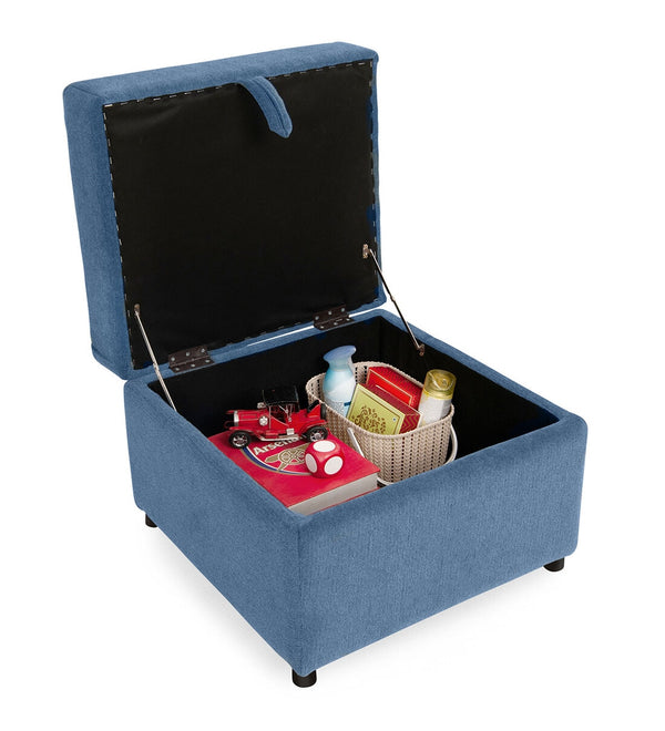 The modern fabric ottoman in Twilight Blue color is a stylish and versatile piece of furniture designed to add both functionality and aesthetic appeal to any living space. Ottomans are popular for their multifunctionality, as they can be used as a footrest, additional seating, or even as a coffee table when paired with a tray.