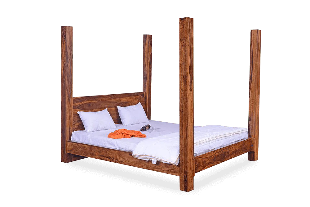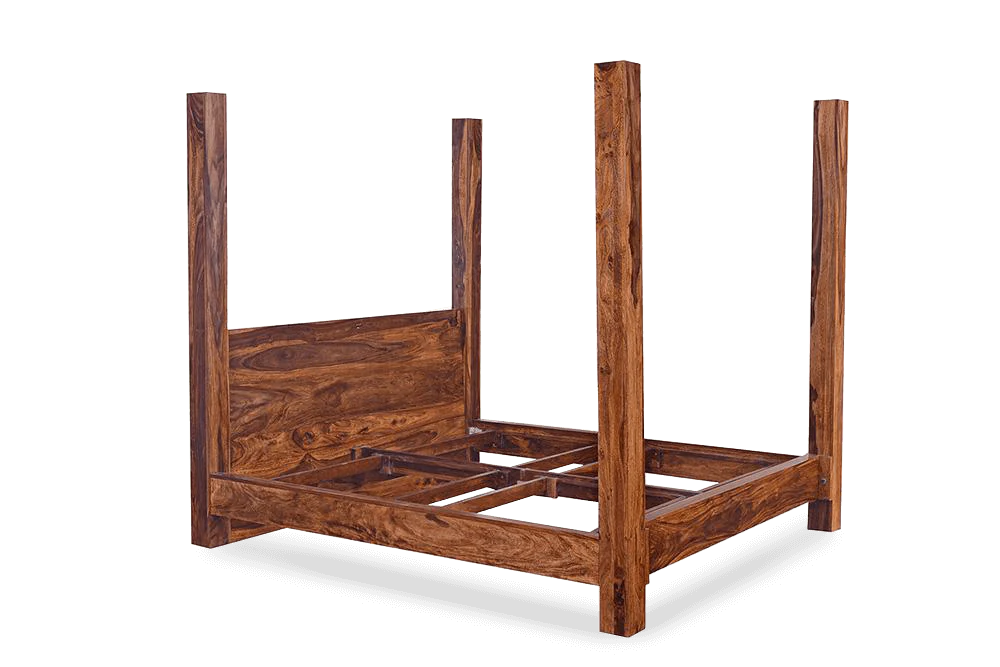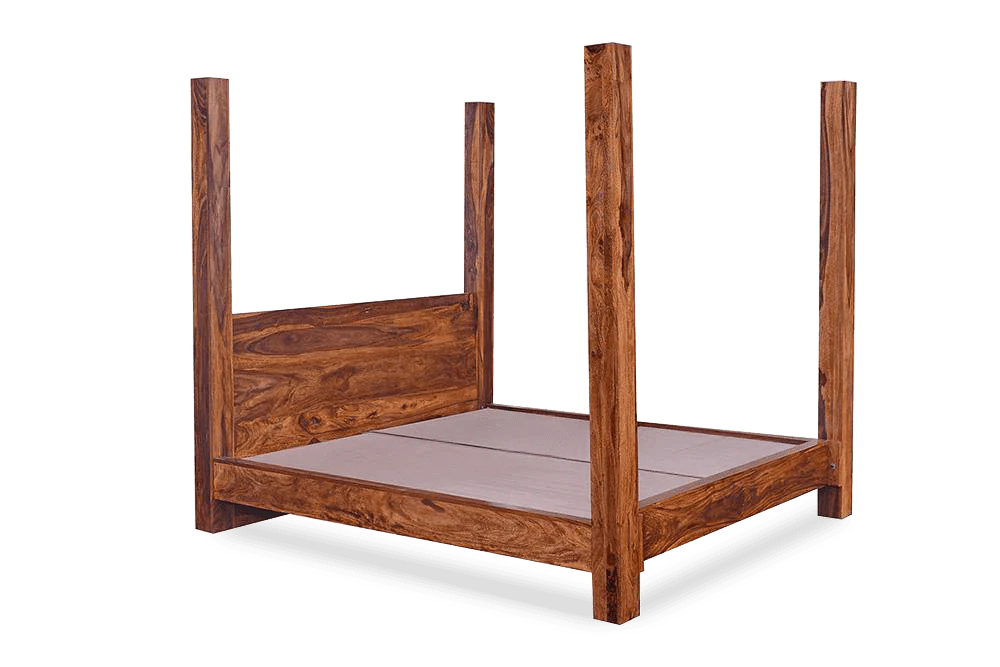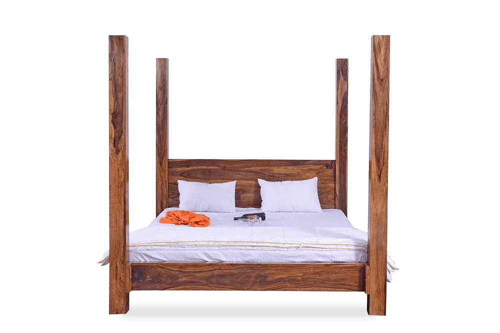 Classic Sheesham Wood Poster Bed In Honey Finish