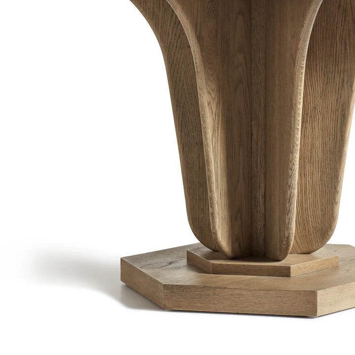 The solid wood dining table featuring a stylish and inviting furniture ensemble designed to accommodate six people for dining comfortably. It combines the natural beauty of natural wood with the striking contrast of hourglass legs on the table, creating an eye-catching and contemporary look. Here's a description of the dining set: