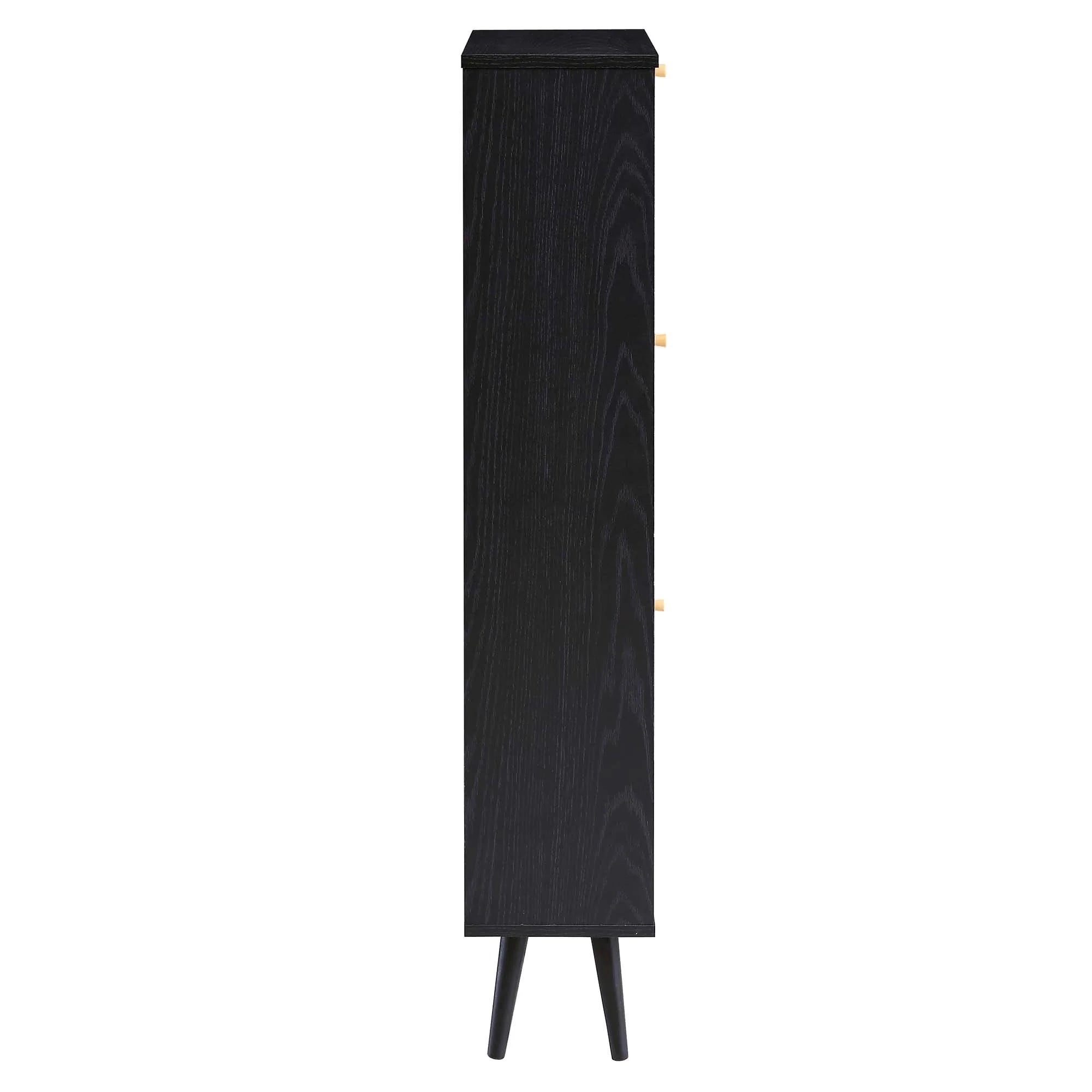 Solid Wood Shoe Storage Cabinet Black Finish 3- Tier
