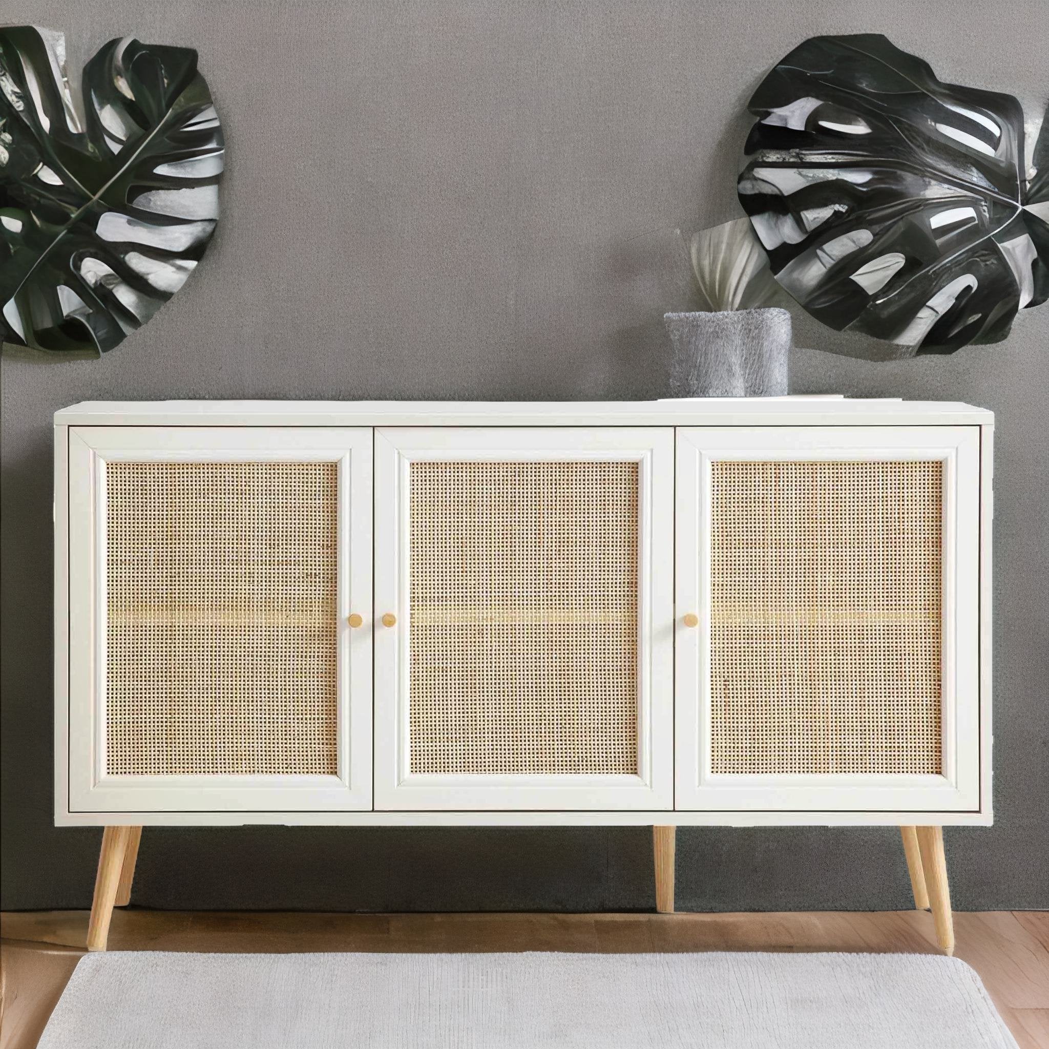 Modern Rattan Solid Wood White Finish Sideboard This listing Includes: 1 x Sideboard