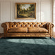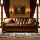 This beautiful piece of furniture pairs well with almost any interpretation of the fine rustic aesthetic. It exudes luxury, yet can be paired with virtually any design aesthetic thanks to its simple, regal design. 100% American Made to the highest standards of quality and craftsmanship! Overall Dimensions: 82 (L)×32 (D)×18 (SH)×34 (H) Inches Arm Height: 24" Seat Depth: 24" Seat Height: 18" Leather Description: Artisan Leathers beautifully evoke this time worn quality, unique to every individual piece, like the originals. To pure aniline leather crusts, already fully and carefully upholstered to the piece, a base color is created with multiple applications of waxes and oils, hand-worked by the leather Artisan.