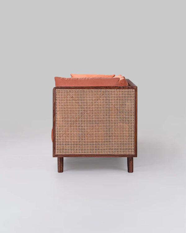 Solid Wood & Fabric 3 Seater Sofa ( Brown and Orange )