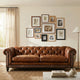 Harkening back to a simpler time, the Belgrade Tufted Leather Sofa features a classic appearance that’s been updated for the modern age. This classic Chesterfield design exemplifies the best design tenants of the 1950s and ‘60s, while also employing a few decidedly 21st century flourishes. The leather furniture is made from artisan hand burnished leather, accented with brass nail heads and deep tufting throughout the entire back, arms, and seat of the sofa. This handmade piece of furniture demonstrates the significance of high-quality craftsmanship and attention to detail. The Brown Leather Sofa is assembled using an eight-way hand-tied method. The one-of-a-kind appearance and interesting construction methodology ensures that this sofa will be the centerpiece of your sitting room. A truly unique piece of furniture! 100% American Made to the highest standards of quality and craftsmanship!