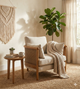 - Versatility: While this armchair can make a lovely addition to a living room or a cozy reading nook, it can also be used as an accent piece in a bedroom or as part of a sunroom or patio ensemble due to its natural materials.