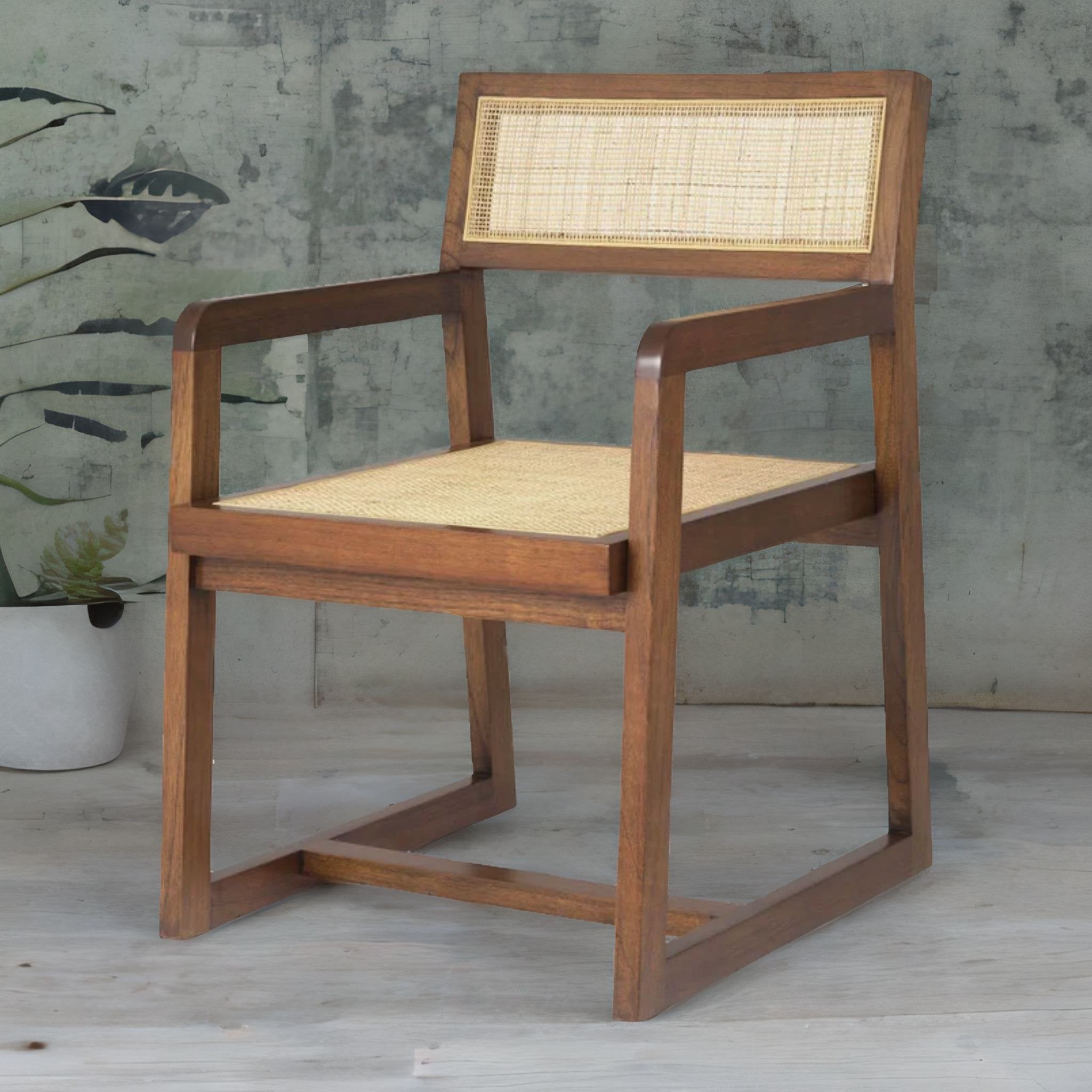 Modern Rattan Solid Wood Dining Chair - Brown Finish Specifications:-