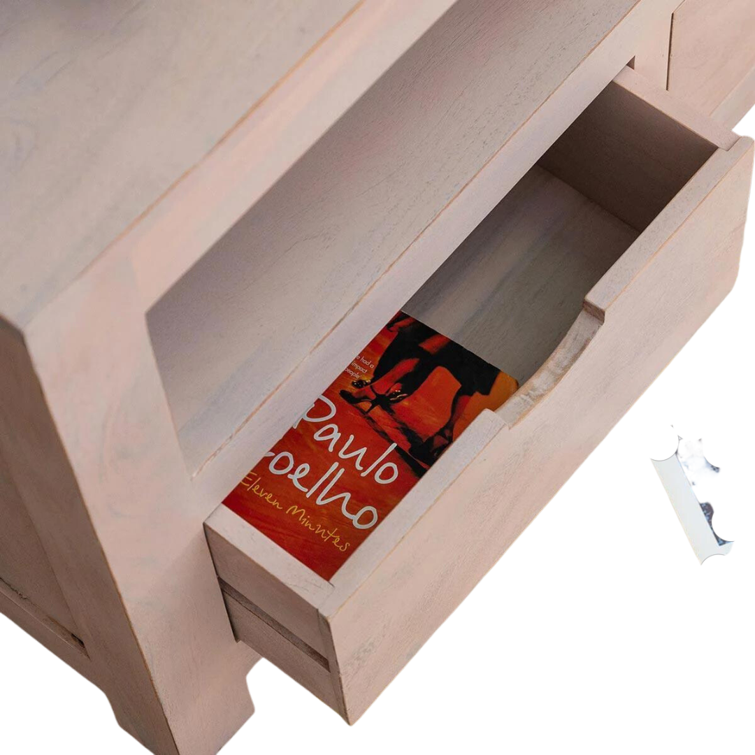 Additionally, some variations of the wood 3 drawer tv unit might include open shelves or compartments. These open spaces can be used to store media players, gaming consoles, or display decorative items to personalize the unit and enhance the overall ambiance of your living room.