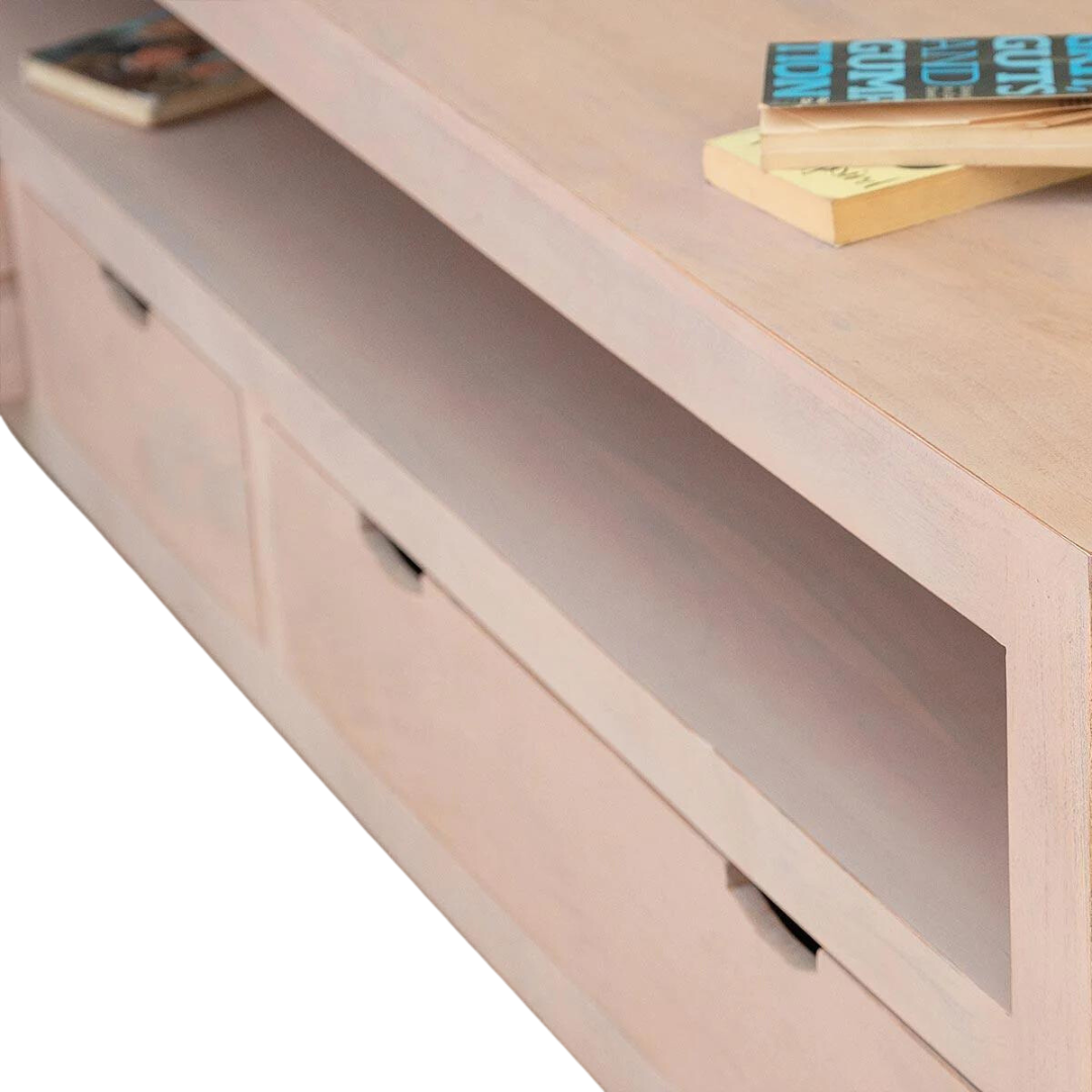 Acacia wood's natural beauty and durability make this TV unit a reliable and long-lasting piece of furniture for your entertainment area. Its rich color and distinctive grain patterns bring warmth and character to your living room, creating a welcoming and inviting atmosphere.