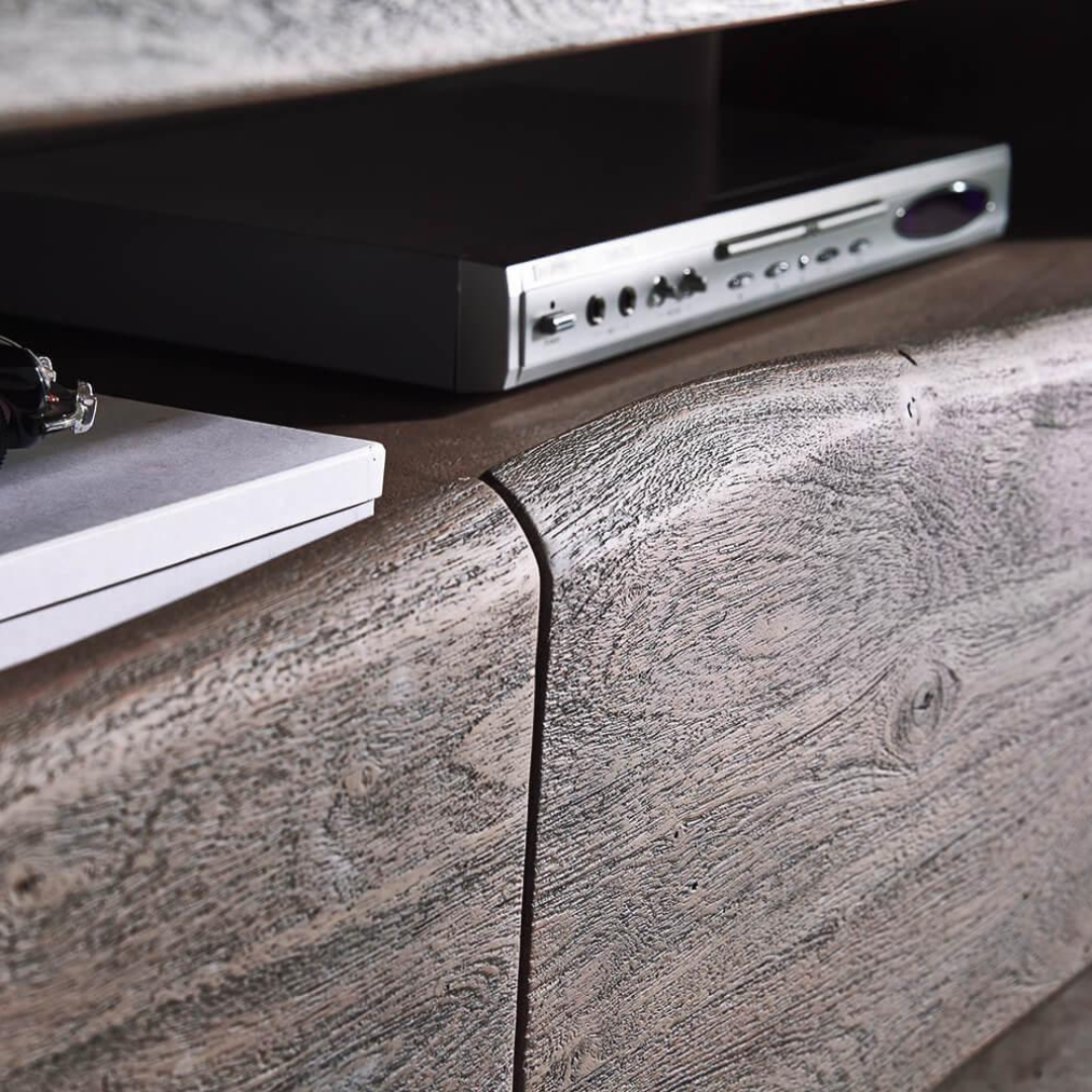 The wooden media cabinet with 4 drawers and 2 open shelves is a practical and stylish storage solution designed specifically for media equipment and accessories.