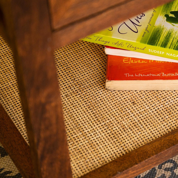 Due to its compact size and versatile design, the Acacia Wood Side Table with 1 Drawer Cane Table can be used in various ways, including as a bedside table, end table, or accent table in your living room, bedroom, or any other space where you need both storage and style.