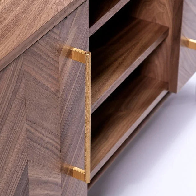 The modern veneer solid wood sideboard is a stylish and functional piece of furniture designed to enhance the aesthetics and storage capacity of any contemporary living space. It seamlessly blends the beauty of natural wood with modern design elements, making it a popular choice for both traditional and modern interior styles.