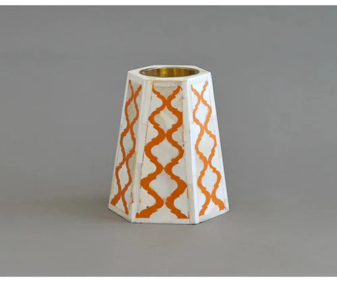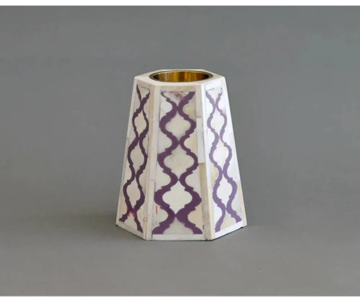 A Resin & Bone Inlay Candle Stand for the home is a unique and artistic decorative item used to hold candles. It is a fusion of two materials - resin and bone inlay - which come together to create a visually stunning and intricate design.