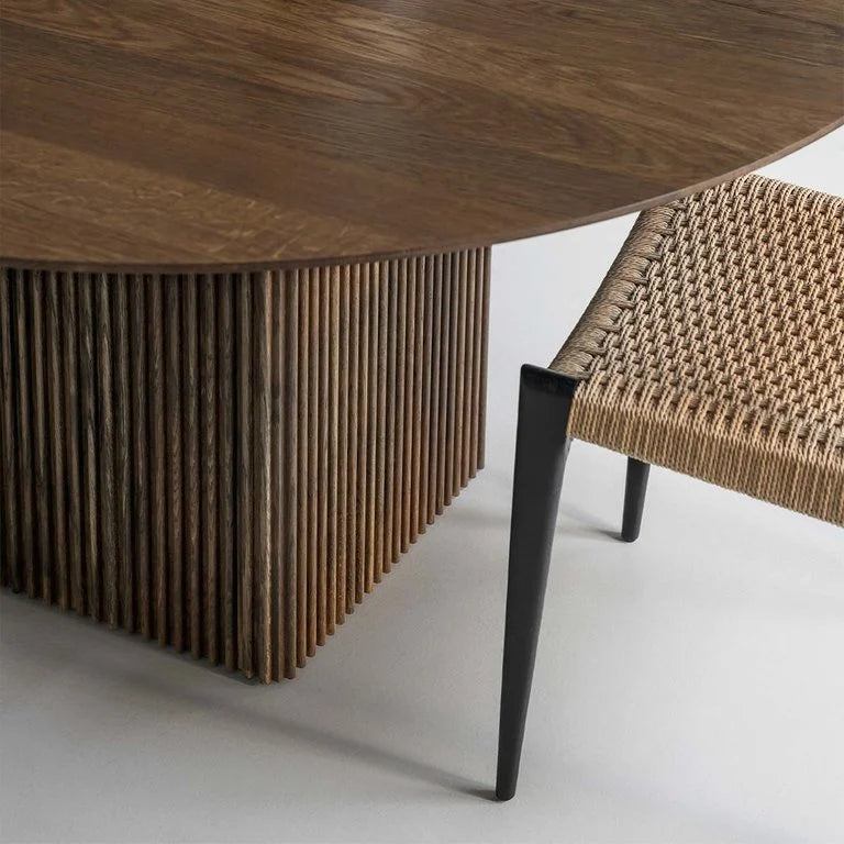 Classic Solid Wood Round Dining Table - Brown Finish Features :-