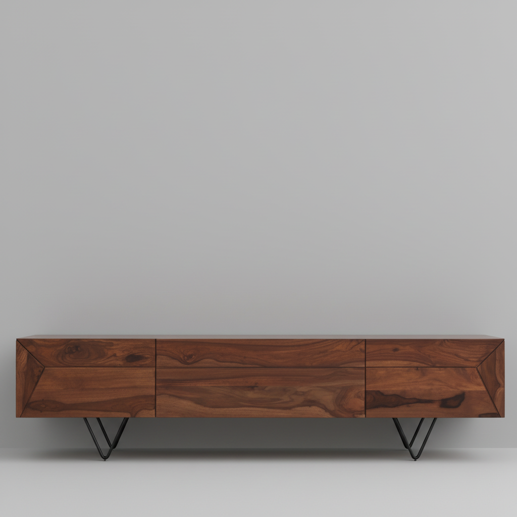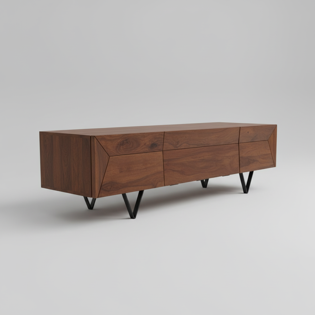 • TV Stand Design offers two side doors and one center door.