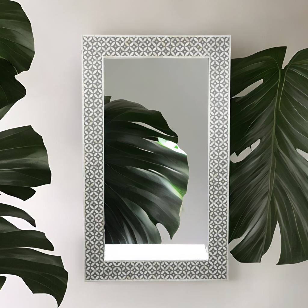 Rectangular Grey Geometric Mirror - Bone Inlay