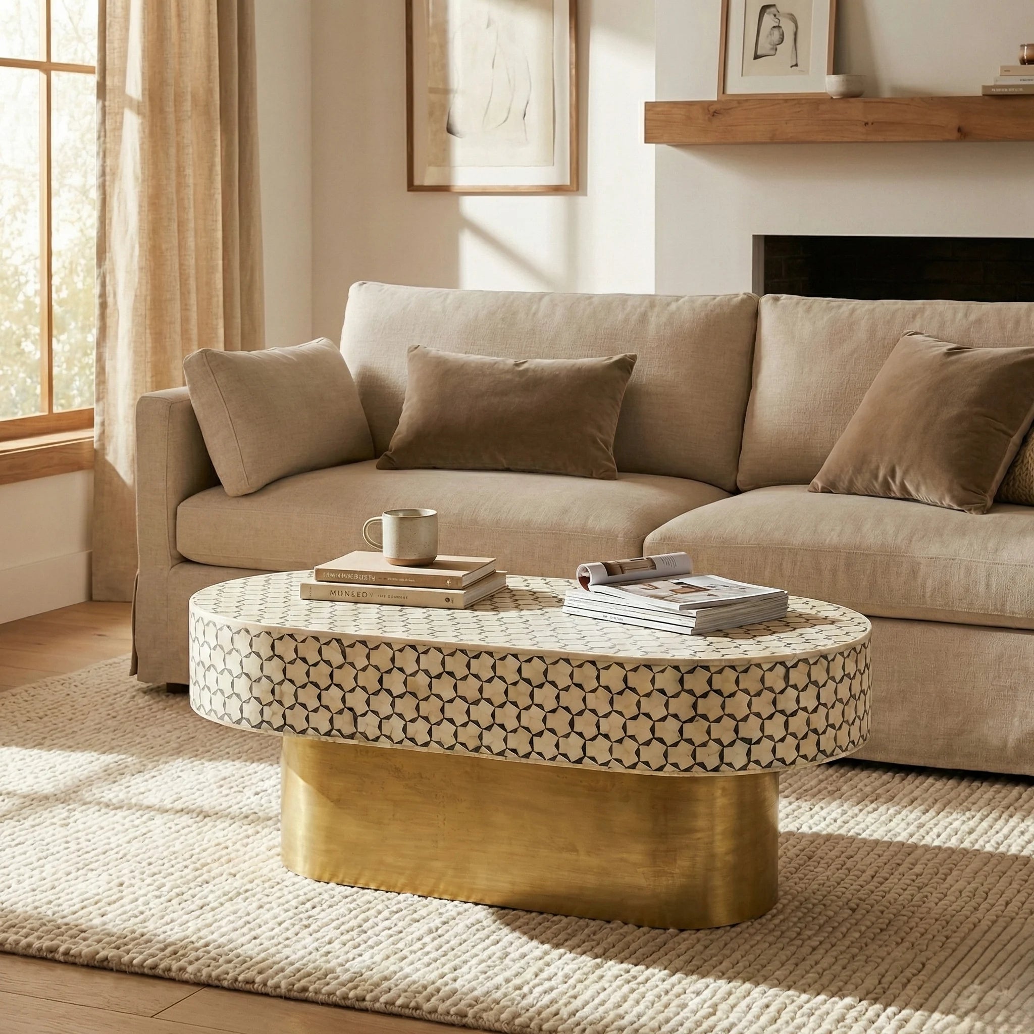 - Simple and oval shape coffee table.