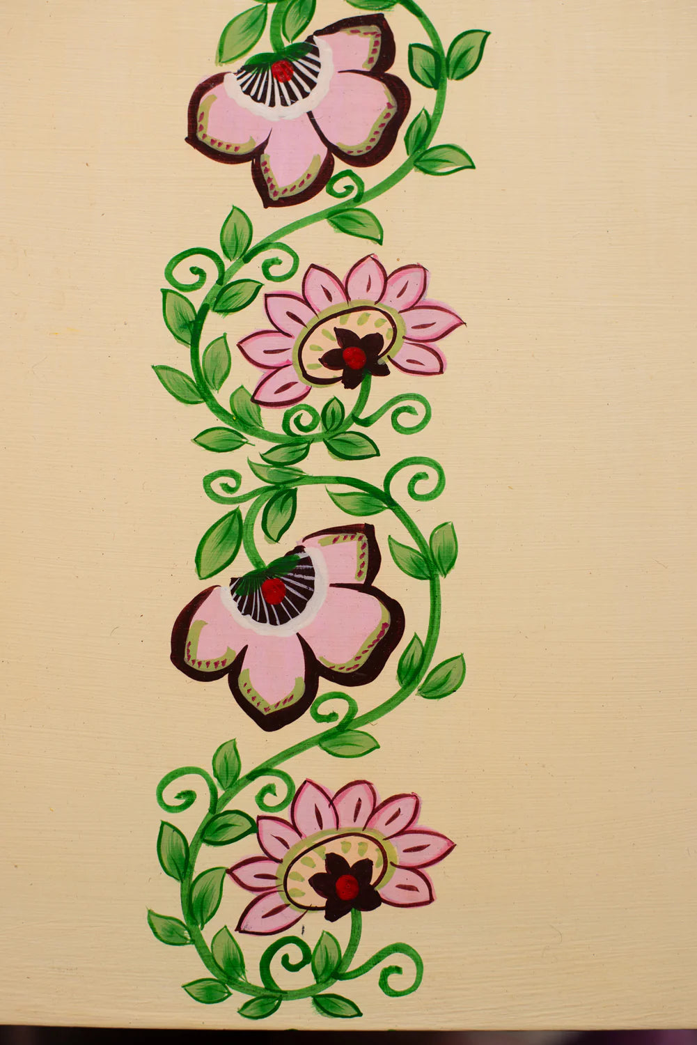 The wooden cabinet with a floral design is a charming and elegant piece of furniture that adds a touch of nature-inspired beauty to your living space. Crafted from high-quality wood, this cabinet seamlessly combines functionality with aesthetic appeal. The cabinet features intricate floral motifs intricately carved or painted onto its wooden surface. These delicate floral patterns can range from roses and lilies to vines and leaves, creating a visually appealing and artistic focal point in your living room.