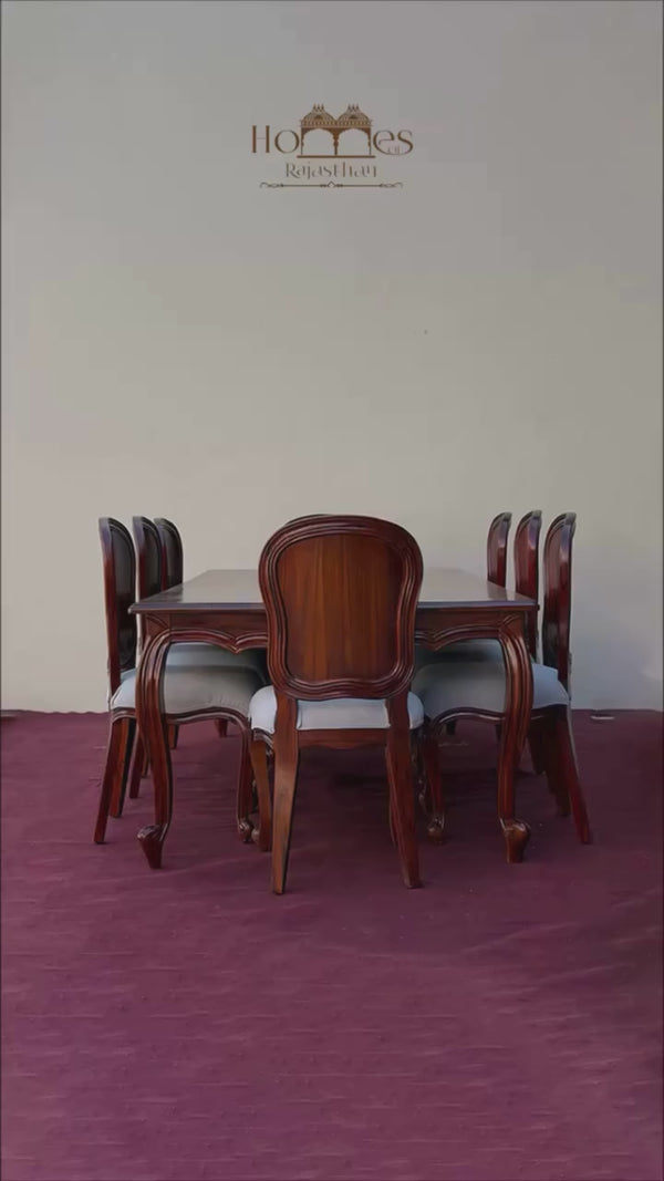 Luxury French Solid Wood Teak 8 Seater Dining Table Set