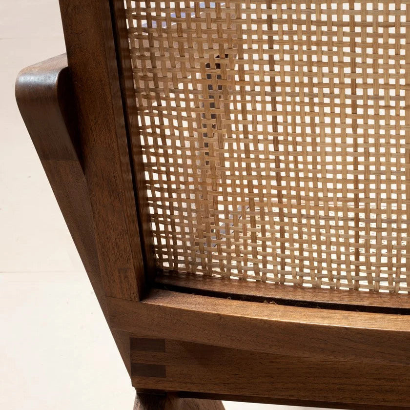 The Rattan Modern Cane Armchair in Natural Finish is a contemporary and stylish piece of furniture designed to add a touch of natural elegance to any living space. This armchair is crafted using rattan, a type of palm that is known for its strength, flexibility, and durability, making it a popular choice for furniture.