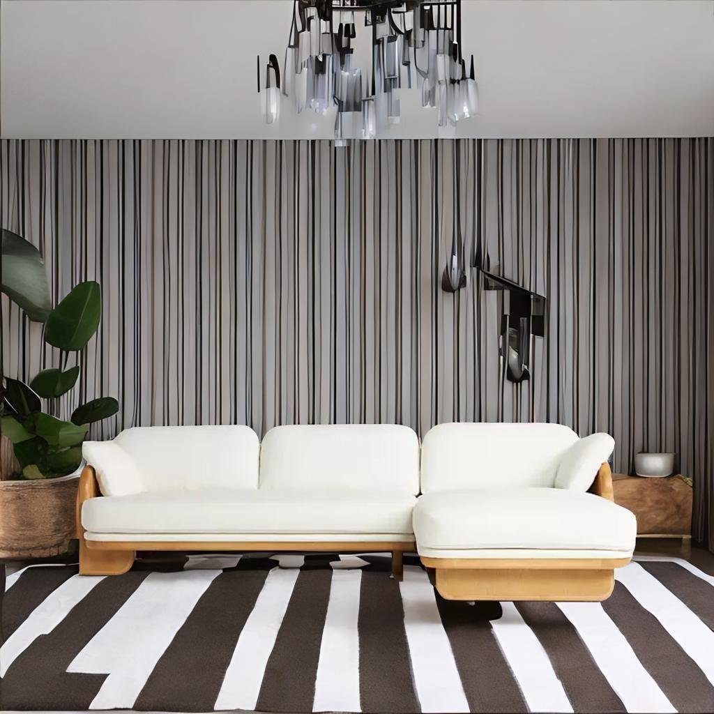 Overall, the modern solid wood and fabric Sectional Couch in White is a beautiful and functional furniture piece that brings together the natural beauty of wood and the comfort of fabric upholstery. It offers a contemporary and inviting seating option for your living room or entertainment area, while also adding a touch of elegance and warmth to your space.