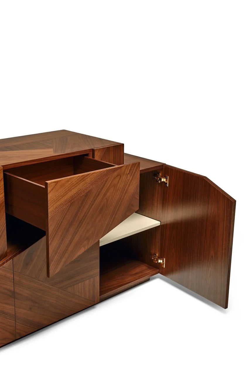 The sideboard's wood veneer is available in various finishes, such as oak, walnut, cherry, or ash, among others. Each finish adds a unique character to the piece, allowing it to match different interior color schemes and styles.