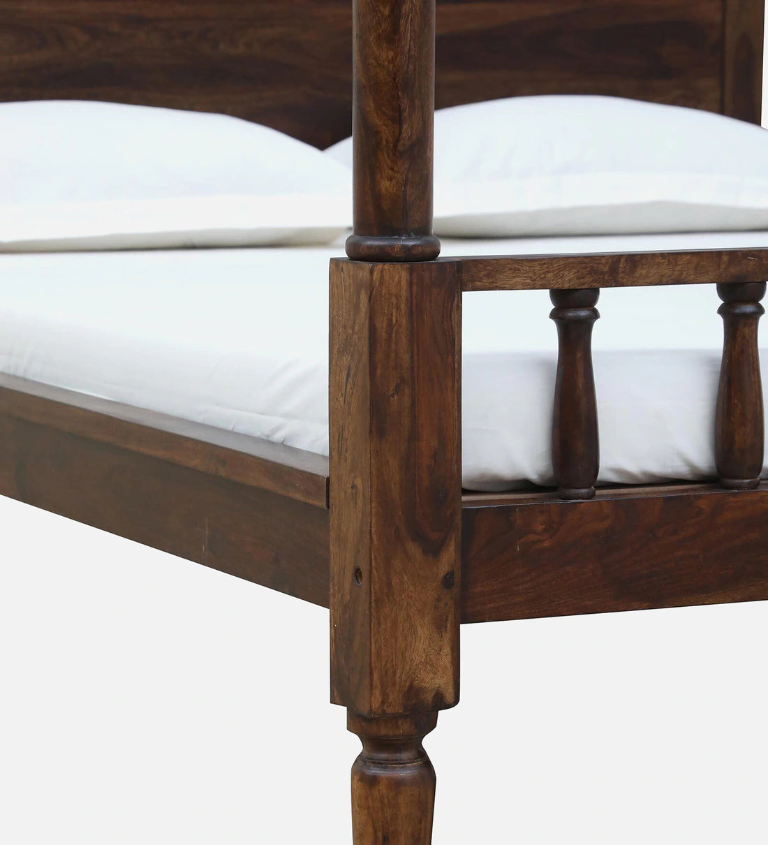 Traditional Sheesham Wood Poster Bed In Provincial Teak Finish