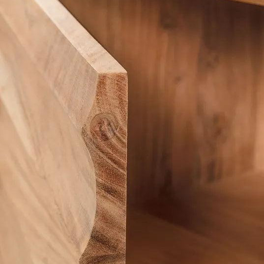 An acacia wood sideboard is a stylish and functional furniture piece that adds elegance and storage space to your living room, dining area, or any room where you desire a blend of aesthetics and utility. Acacia wood is highly regarded for its durability, distinctive grain patterns, and warm color tones, making it a popular choice for furniture crafting. The sideboard typically features a rectangular or slightly curved design, with a flat top surface that can be used for displaying decorative items, holding drinks, or serving food. Sideboards often incorporate various storage options, such as cabinets, drawers, and open shelves. The design of an wood sideboard can vary widely, from sleek and modern to more traditional or rustic styles.